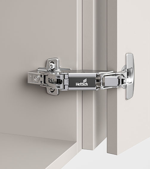 Исключение составляет заглушка на плече петли Sensys с широким углом открывания, где размещен только логотип «Hettich».