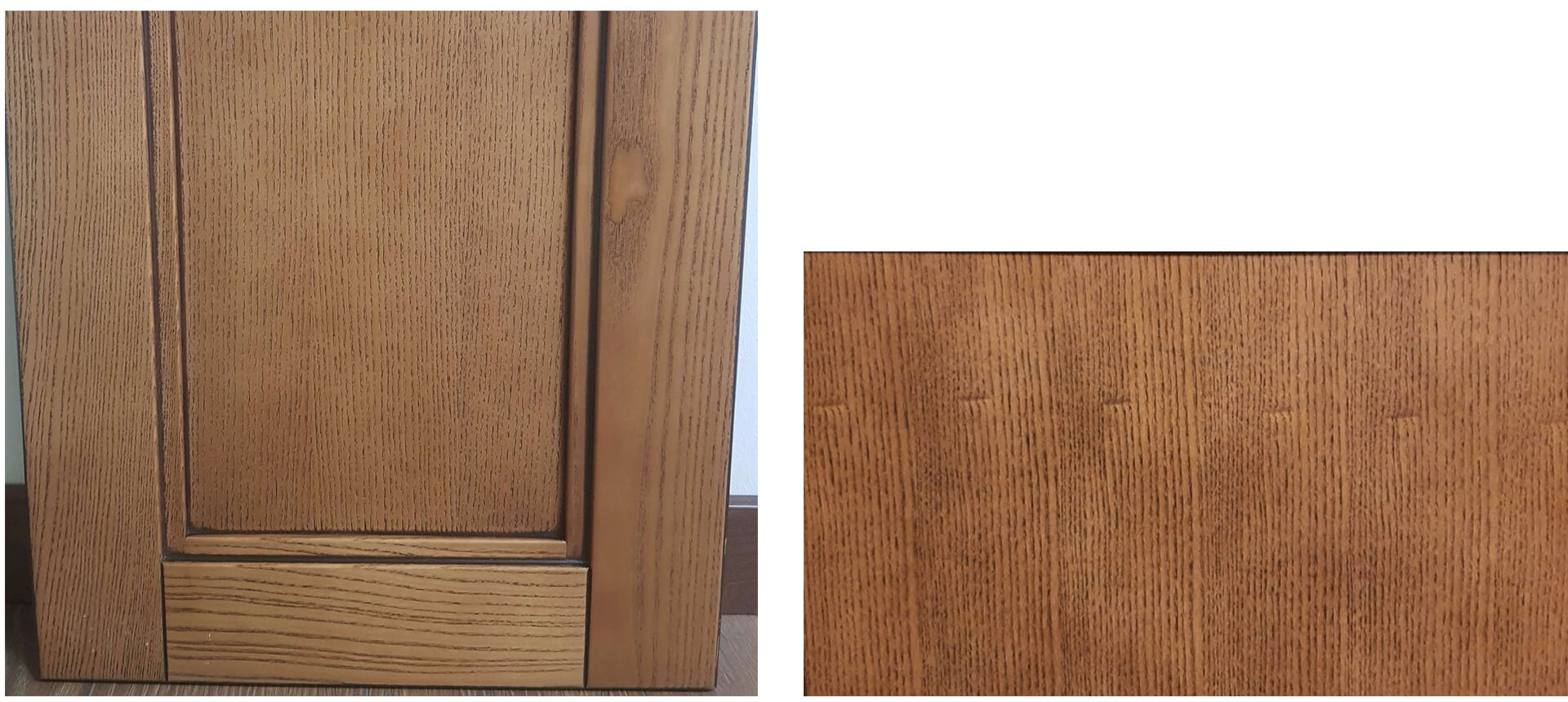 Фасад из натурального дерева - это сложное комбинированное изделие, состоящее из рамки, изготовленной из массива дерева, и вставки (филенки) из массива дерева либо панели, облицованной натуральным шпоном.